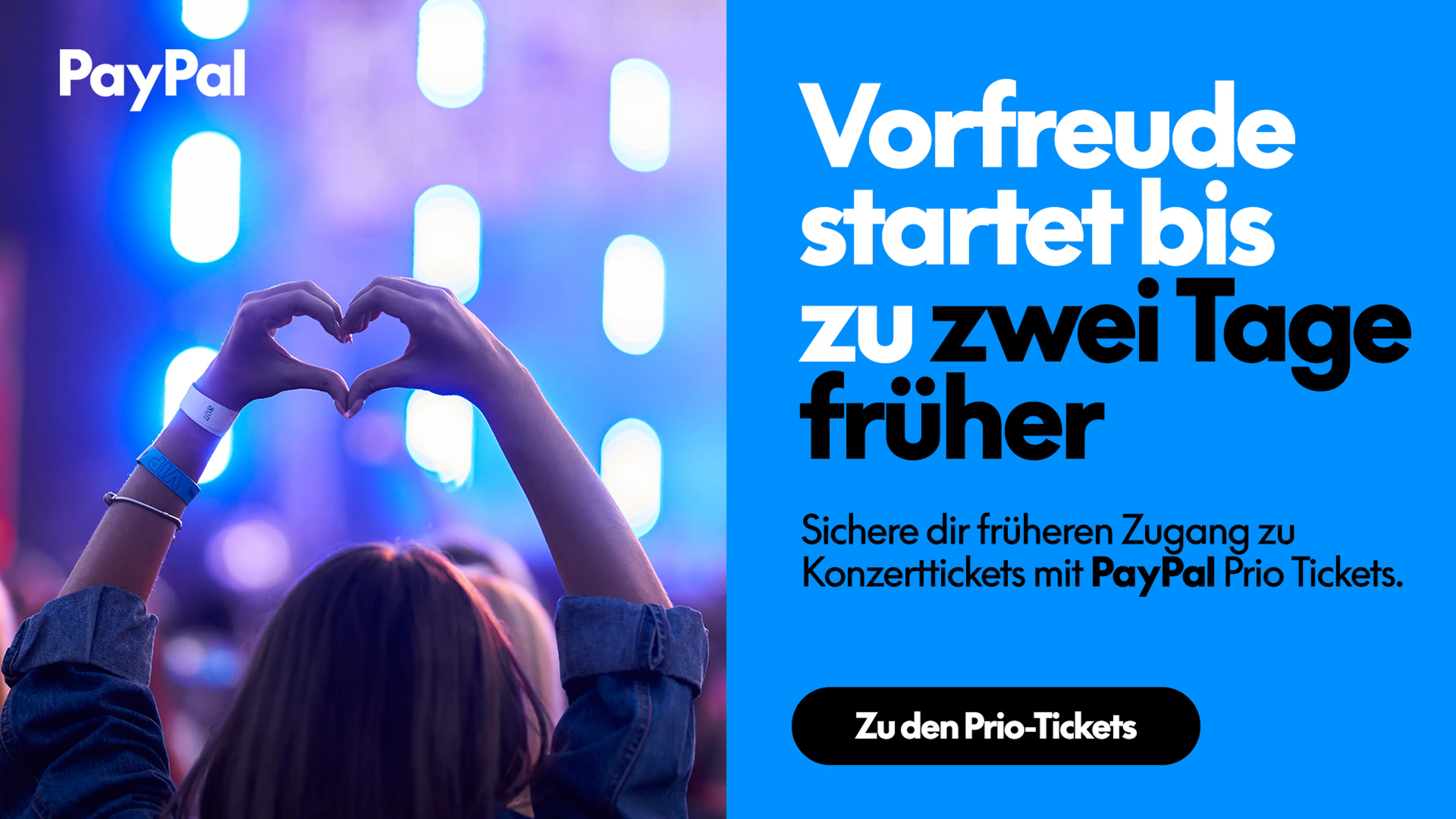 PayPal, eines der weltweit größten Online-Zahlungssysteme, bietet seinen Kund:innen ab sofort einen Priority-Ticket-Zugang zu einigen der größten Shows in Deutschland. Alles , was ein Fan braucht, ist ein aktives PayPal- sowie Ticketmaster-Konto, um auf Prio Tickets zuzugreifen und den Ticketmaster-Kaufprozess unter Nutzung der Zahlungsmethode PayPal abzuschließen!